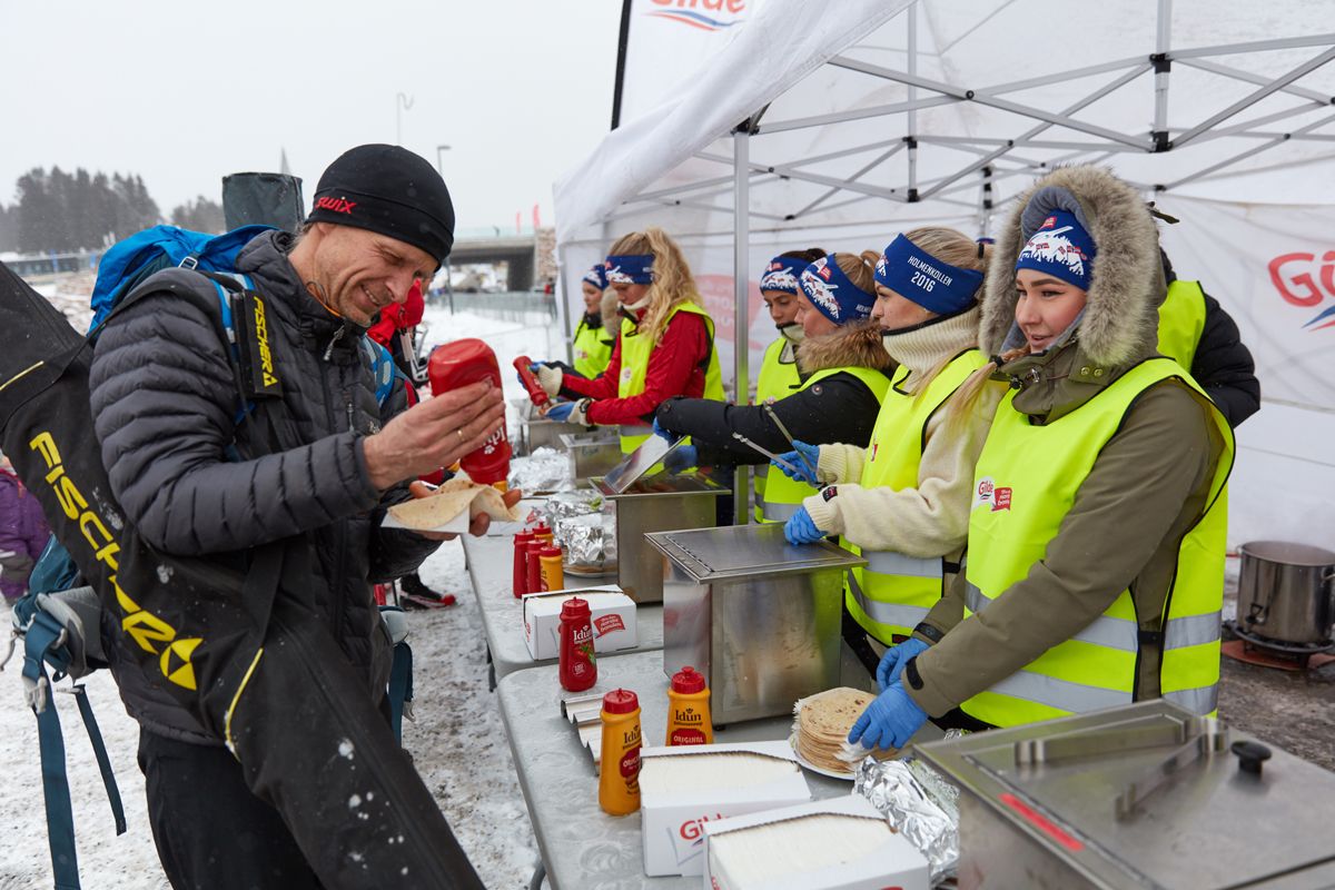 DELER UT 3500-4500 PØLSER: Gled deg til målgang! Alle som kommer i mål, får tilbudt gratis pølser fra Gilde. Totalt regner pølseprodusenten med å dele ut 3500-4500 pølser til deltakerne etter målgang.